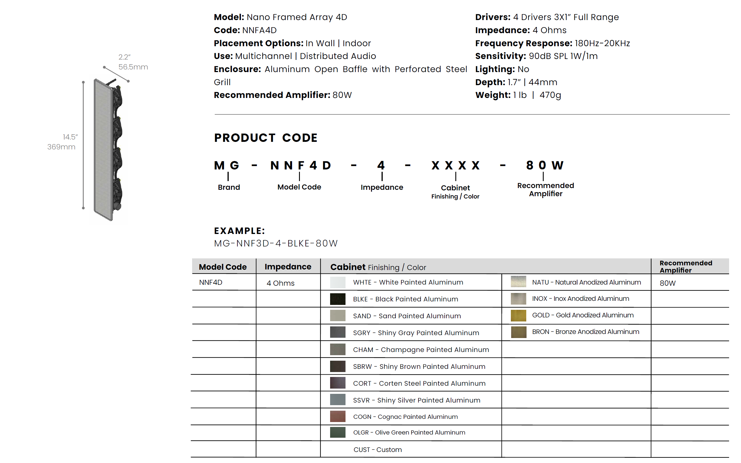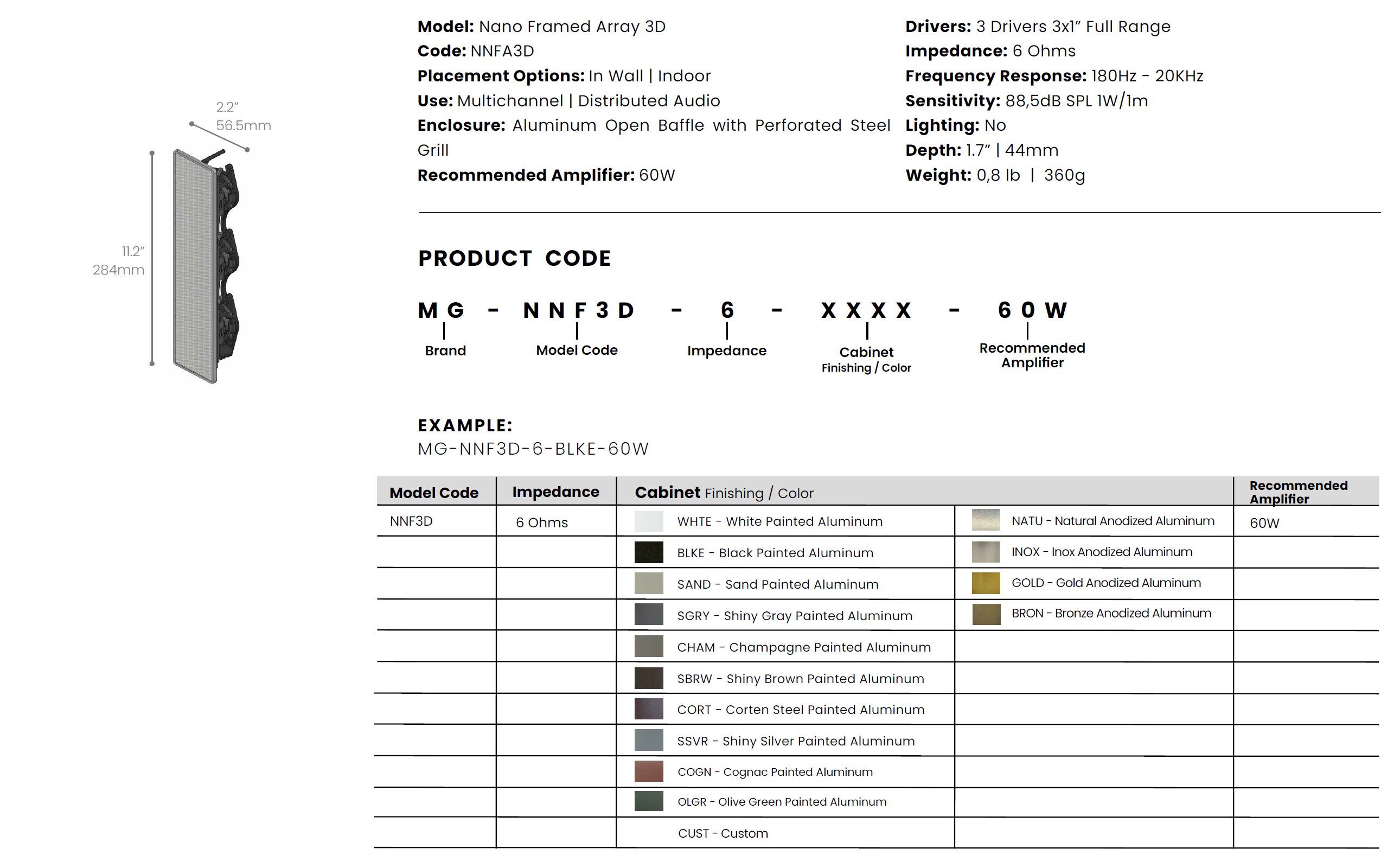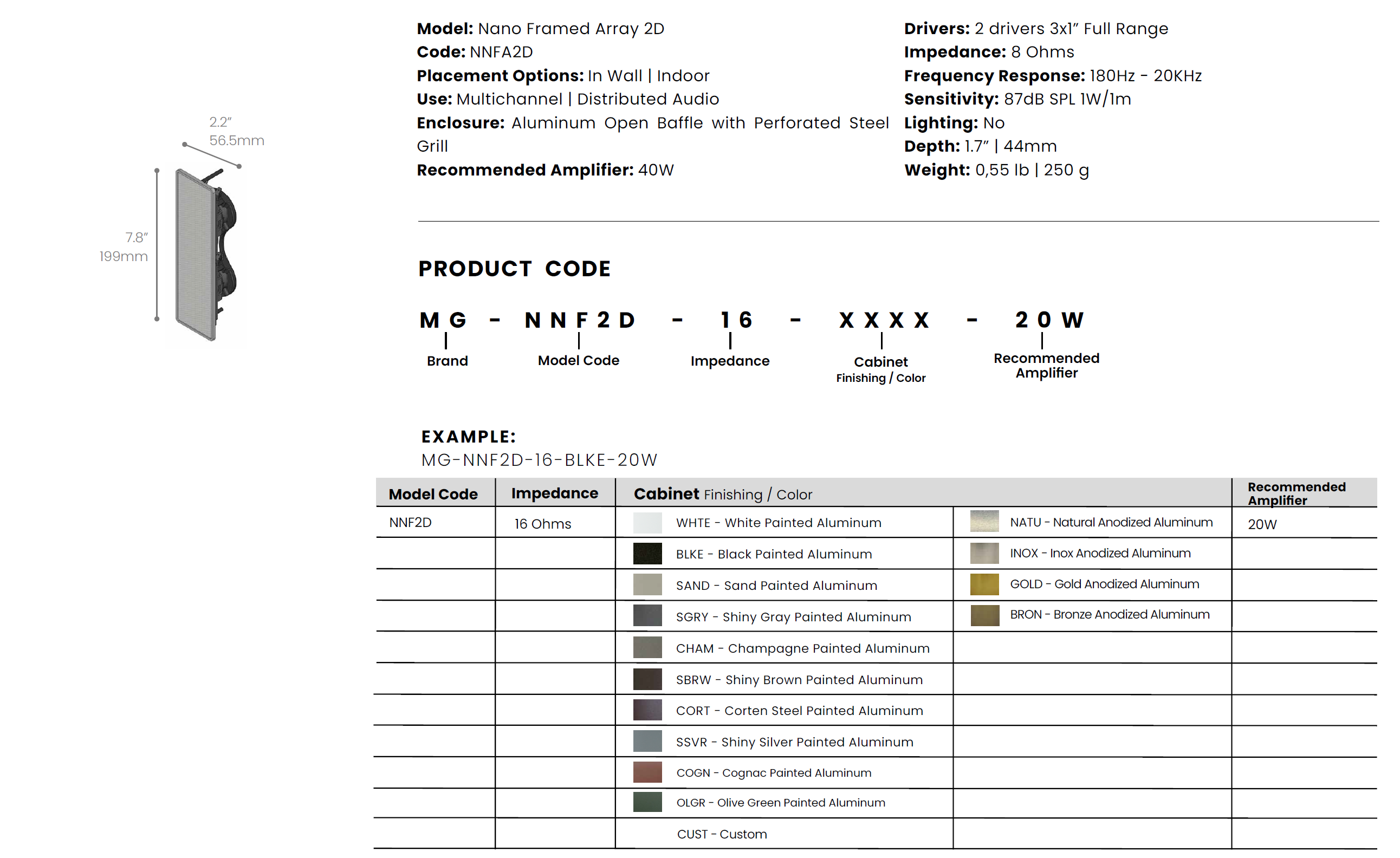 Das Modell Nano Framed 1D verfügt über einen 3×1″-Breitbandlautsprecher mit 16 Ohm Impedanz und einer empfohlenen Verstärkung von 20 W.